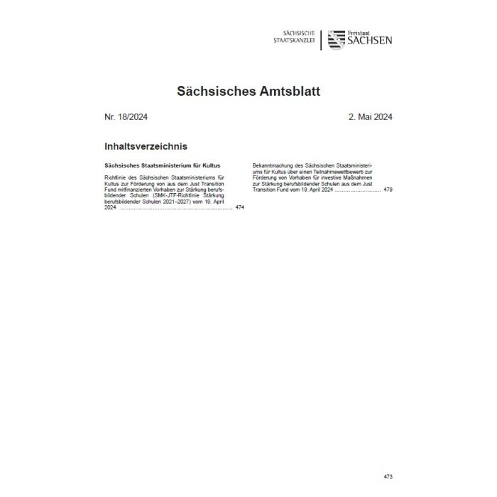 Inhaltsverzeichnis | Sächsisches Amtsblatt Nr. 18/2024
