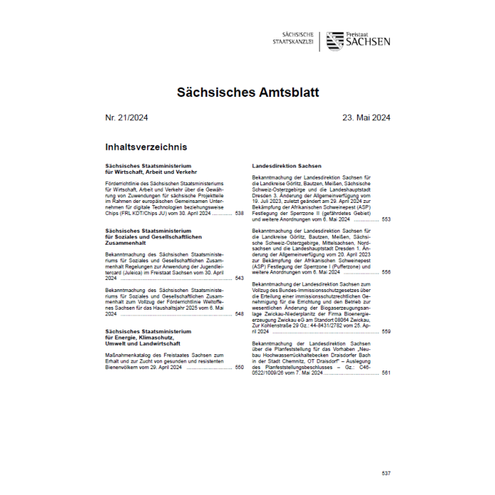 Inhaltsverzeichnis | Sächsisches Amtsblatt Nr. 21/2024