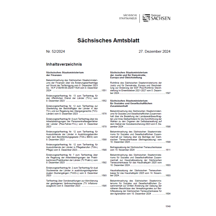Inhaltsverzeichnis | Sächsisches Amtsblatt Nr. 52/2024
