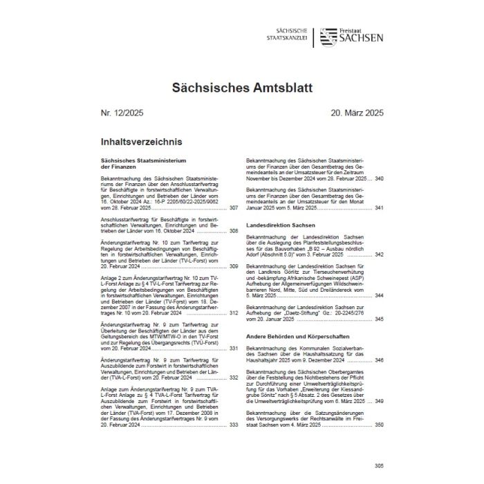 Inhaltsverzeichnis | Sächsisches Amtsblatt Nr. 12/2025